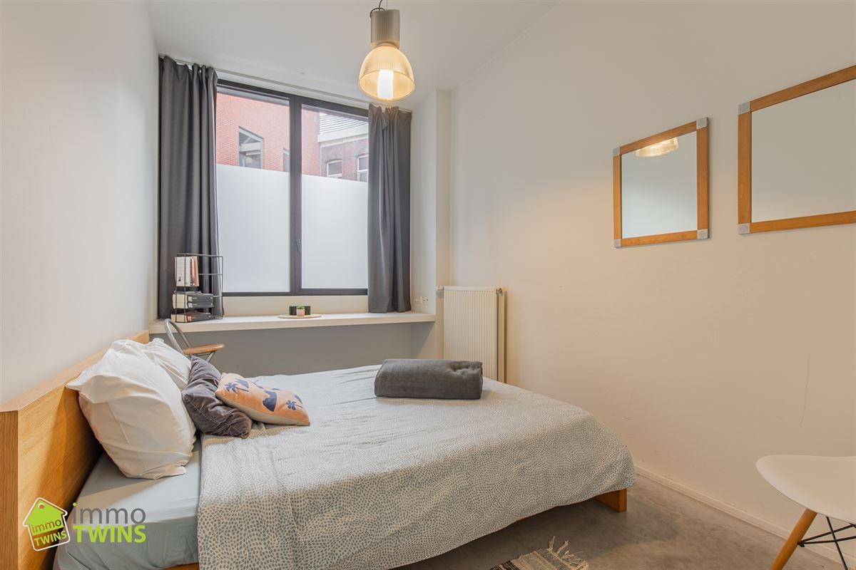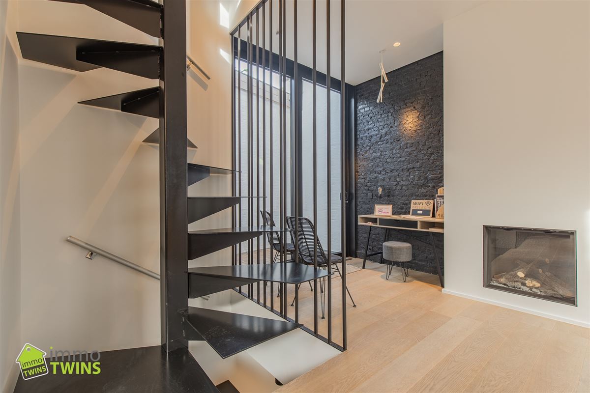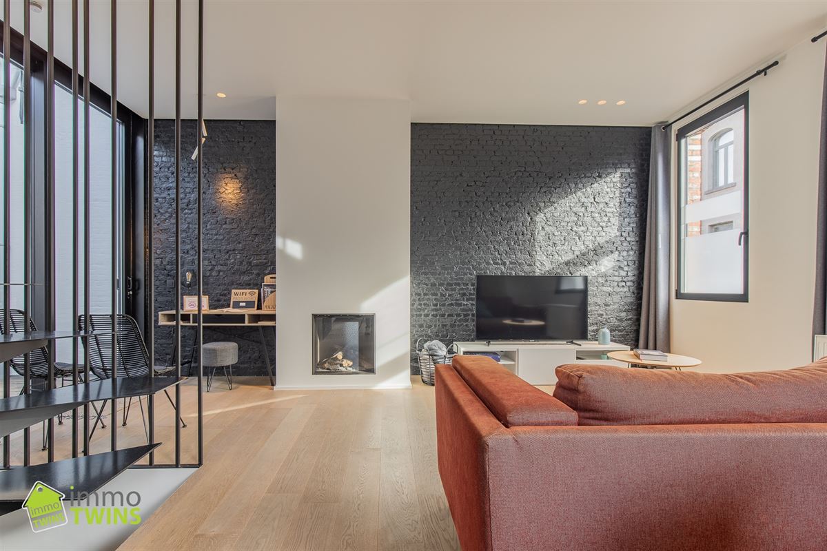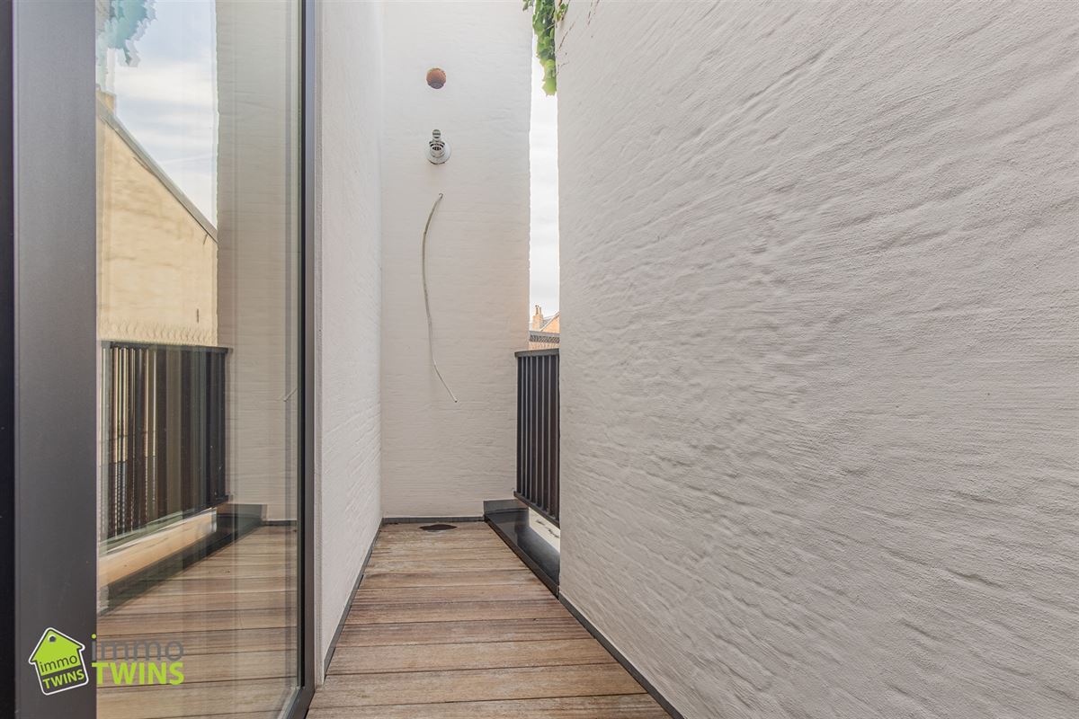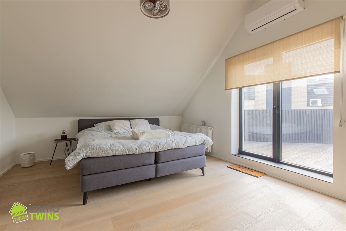 De tweede verdieping is volledig ingericht als ruime master bedroom. Deze kamer beschikt over airconditioning, wat zorgt voor extra comfort tijdens warme zomerdagen. Aansluitend bevindt zich een groot terras, een echte troef waar u in alle privacy kan genieten van de buitenruimte midden in de stad.